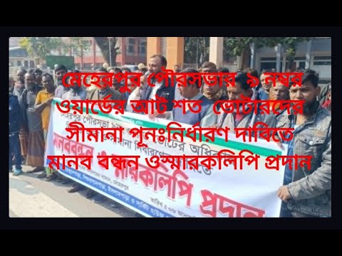 » মেহেরপুর পৌরসভার ৯ নম্বর ওয়ার্ডের আট শত ভোটারদের সীমানা পূনঃনির্ধারণ দাবিতে মানব বন্ধন ওস্মারকলিপি প্রদান